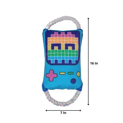 Inspired by the magical and cool nature of children, the large retro gamer plush toy is great for all size dogs. Filled with stuffing crinkle paper and a squeaker your dog can roll around and get snuggly or tug at it as well. This plush toy looks amazing but its primary function is to provide comfort to your dog. Perfect for gamers, retro lovers, and cool kids. Be different with our awesome Plush Dog Toys Size: 16 x 7
