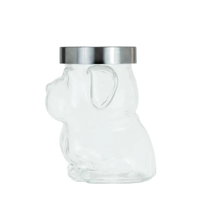 - Keep your pet’s food safe and fresh with the Amici Pet Mad Dog Glass Canister. This large glass jar can hold dry food and treats for dogs and other pets. 5” L x 6.25” Wx7.5” H with a 48 oz capacity.