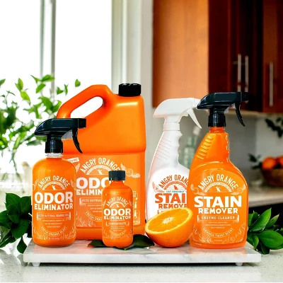 Blast away foul smells instantly with Angry Orange Pet Odor Eliminator, an exclusive formula forstrong odor! Originally formulated to combat industrial-sized stench from feedlots, sludge ponds,and boarding kennels, the Angry Orange Odor Eliminator harnesses the power of naturalorange oil to do its dirty work. This cleaner and deodorizer has the angelic aroma of freshoranges because it’s made from cold-pressed orange peels — none of that nasty chemical stink!Use as directed on surfaces like carpets, furniture, basements, turf, and floors.Pair with Angry Orange Enzymatic-Action Pet Stain Remover spray to eliminate the toughest petmesses and stains in your home from cat pee, dog poop, and more.