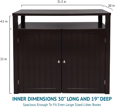 - Inner dimensions are 30″ long and 19″ deep, spacious enough to fit even large sized litter boxes.