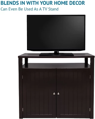 Functional furniture for both you and your petYour cat’s litter box no longer has to take away from your home décor with the Arf Pets Large Cat Litter Box Cabinet in Espresso.Designed with you and your cat in mind, this litter box enclosure adds the style you want with the functionality your whole family needs. This unit conveniently hides your pet’s litter box and acts as a functional piece of furniture for the rest of the family, easily supporting your television, end table lamps, family pictures, and more.Simple storage, superb stylingWith the moveable dividing panel, easily set up your litter box cabinet to either store one large litter box or include a separated food storage compartment. Simply use these pet items when you need them and store them out of sight when you don’t!Don’t choose between making spaces for you or your cat. With the Arf Pets Large Cat Litter Box Cabinet in Espresso, you can maximize your space while making it suit the whole family.