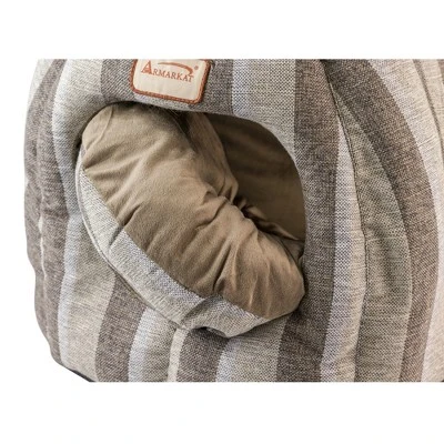 Armarkat Model C30 cat bed can hug your cat to sleep. This cat bed features a gray and silver, bronze and silver, or laurel green and beige color combination. Your cat will treasure its extra-thick, 100% polyfill cushioning. Model C30CG is made of durable canvas, while C30HHG/SH and C30HML/MH feature with luxe velvet and buttery faux suede. They are crafted with a waterproof and skid-free base. It prevents moving and shifting when your pet steps on, steps off, or curls up for a nap. The silky and soft coverings are an easy maintenance to keep it clean and fluffy. Inside cushion is machine washable to tackle pesky messes. Hand wash the pet bed, and machine wash the padding. Six months manufacturer warranty against defects. Dimensions: 18″(L) x 18″(W) x 16″(H)
