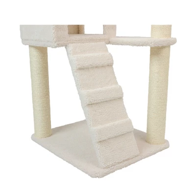 - 53 inch height, 5 level cat condo in ivory, it includes ramp, perch, condo and hanging toy.
