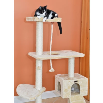- 58 in height multi tier cat tree, it includes a running ramp, condo, and perch.