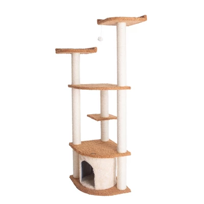 - Well constructed of strong and sturdy pressed wood. Includes eight sisal scratching posts, two perches, a soft playhouse.
