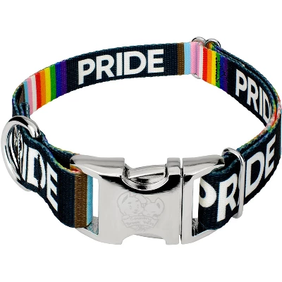 Display your PRIDE for equality with our Premium Pride Dog Collar. Showcasing all colors of the LGBTQIA+ flag and showing support for all members of the community, this new Pride design makes a bold statement. Printed using our colorfast dye, our collars will not run or bleed. Created from superior hardware and webbing, Country Brook Petz’ Pride Premium Dog Collars will not only provide your pup with a trendy collar, but will give you a sense of ease when using our products.Country Brook Petz’ premium patterned collars are vibrant, comfortable collars made right here in the U.S.A. These collars are constructed using strong polyester webbing, dependable metal side release buckles that feature a brilliant mirror finish, heavy-duty wide-mouthed triglides, and heavy welded D-rings. Our polyester collars are ribbed, soft, and sleek to the touch with a little bit of a sheen. Country Brook makes all their collars after the order has been placed. However, rest assured as your collar will ship within two business days of receiving payment.We want your furbaby to be able to show the world their new collar immediately, so be sure to measure for the right size. You can check this out by using a string, or tape measure, to see where the collar will fit snugly and comfortably on your dog’s neck. These stylish prints work well with both boy and girl puppers.