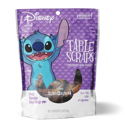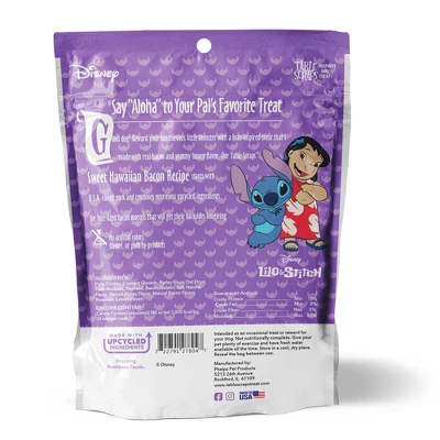 Good dog! Reward your mischievous little monster with a drool-worthy treat that?s made with real honey and bacon. Our Disney Table Scraps? Sweet Hawaiian Bacon Recipe starts with U.S.A.-raised pork and combines nutritious upcycled ingredients for bite-sized bacon morsels that will get their backsides boogieing.Ingredients: Pork, Chicken, Coconut Glycerin, Barley Flour, Oat Flour, Cane Molasses, Flaxseed, Bacon, Gelatin, Salt, Natural Flavor, Natural Honey Flavor, Natural Bacon Flavor, Rosemary Extract (flavor) Made with upcycled ingredients – upcycled flaxseed, upcycled barley & oats