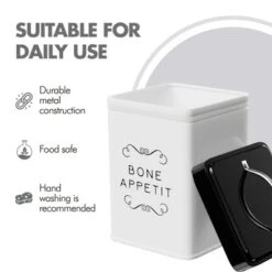 Amici Pet Sparky Bone Appetit Metal Storage Canister, 36 Oz. , White & Black