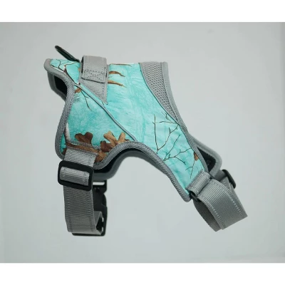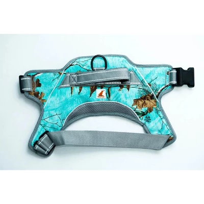 This high end Realtree harness is constructed with very sturdy and durable Denier fabric that is also super soft and water repellant. This revolutionary no pull harness offers incredible function and no choke design, an excellent solution for hard pulling pets. Made for your pet to provide freedom of movement so they can run and explore comfortably as it is designed with wide padded straps that help distribute pressure evenly when your dog pulls. Soft breathable air mesh fabric for the neck and back adds comfort for your pets. Contrast color bartack lines add beauty and sense of design. Our sturdy padded handle is easy to control and helps keep your pet close when needed. Reflective lines throughout and heavy duty metal D ring for leading your pet complete this easy to use and adjustable harness.