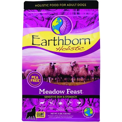 Your dog’s ancestors craved hunting the vast meadows for their food. Give them a taste of the hunt with Earthborn Holistic Meadow Feast dry dog food. Made with lamb meal as the only animal protein source, and added fruits and veggies like pumpkin, blueberries, apples, carrots, carrots and spinach, Meadow Feast helps support dogs with a sensitive stomachs. This grain-free, heart-healthy recipe is made without peas, legumes or lentils in our family-owned kitchens located in the US.