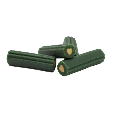 - 4-in-1 dental benefits help: reduce plaque and tartar, clean along the gumline, polish teeth with chewy toothpaste center, and freshen breath with daily chewing and aromatic spices