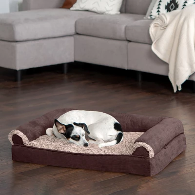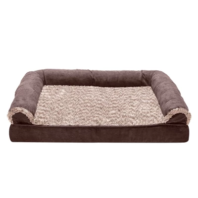 Perfect for pets young and old, the FurHaven Two-Tone Faux Fur & Suede Sofa-Style Cooling Gel Pet Bed is designed to provide your loved one with maximum comfort for a good night’s rest. With a soft, plush faux fur sleeping surface your dog will be more snug than a bug in a rug! Ultra plush, flecked faux fur provides a snuggly soft sleep surface and trims the edges of the bolster for a chic flair. The two-tone design hides dirt and pet dander better than traditional plush sleep surfaces. The medical-grade foam core includes a layered orthopedic foam core topped with gel-infused Cooling Gel-Top Foam. Micro gel beads help keep the bed cooler while Cooling Gel-Top Foam conforms to your pet’s shape providing superior support of joints and pressure points.