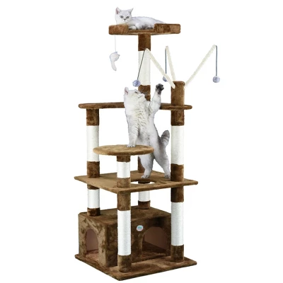 - COMFORT AND ENTERTAINMENT FOR YOUR CAT: Your cat needs a space of their own to rest and play. They can take a nap or play around as much as they want; this cat tree lets your cat be more active. The Go Pet Club cat tree is durable enough for endless amount of playtime for your cat.