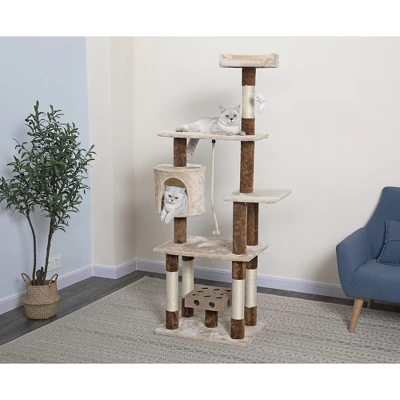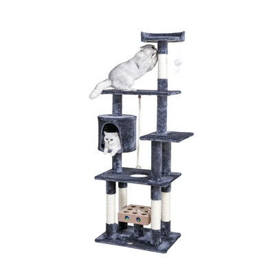 - COMFORT AND ENTERTAINMENT FOR YOUR CAT: Your cat needs a space of their own to rest and play. They can take a nap or play around as much as they want; this cat tree lets your cat be more active. The Go Pet Club cat tree is durable enough for endless amount of playtime for your cat.