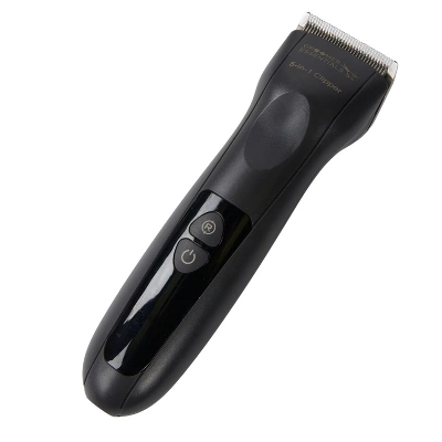 The Groomer Essentials 5-in-1 Clipper is a lightweight, low noise level, and easy-to-use clipper. This clipper has 3 different speeds and 5 different cutting lengths. The 5-in-1 has an LCD screen that displays cutting speed, battery level, and charging status. It comes with 6 guide comb attachments, a cleaning brush, blade oil, and a charging cord & docking station. The clipper can be used with the charging cable plugged in to add run time.
