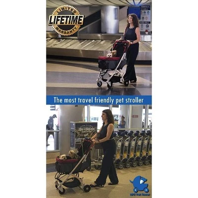 Calling all jet setters! This premium, lightweight pet stroller was made for travel. When , it fits in an overhead airline bin or the trunk of a small car. It comes with a retractable towing handle and Pet Rover’s signature durability features like sturdy wheels, weather-resistant fabric, PU-leather handlebar and a rust-free, anodized gold aluminum frame. With one-hand quick fold and unfold feature, get ready for takeoff with the Pet Rover Lite Stroller.
