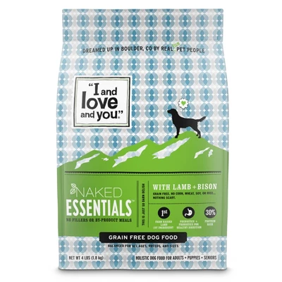 Nothing says “I love you” better than feeding your furry family member Naked Essentials Lamb and Bison Dry Dog Food from I and Love and You. This lamb dog food contains no corn, wheat, soy or rice and is free from artificial colors, flavors and preservatives, because your best friend deserves only the best. Happy Tummeez probiotics support digestion, while Omega 3’s and Omega 6’s help keep their skin and coat healthy.