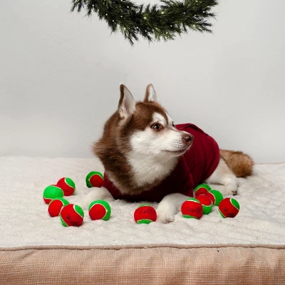 - These Christmas-colored mini tennis balls are sure to be a hit with your fetch-loving dog this holiday season!