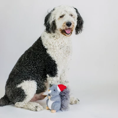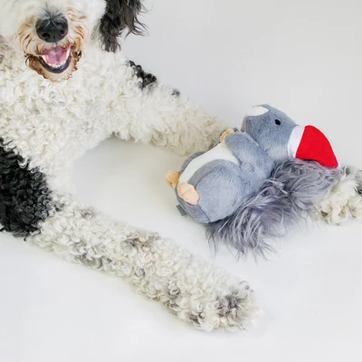 A cute squirrel with a Santa hat, this is the perfect gift for your dog’s stocking this Christmas. This furry rascal won’t be able to escape your dog this time! No more barking up the tree. This plush furry squirrel is Christmas themed with its Santa hat. Includes a squeaker. Makes the perfect gift for any dog that loves to chase squirrels. 9″ tall. The perfect gift for pups who like to chase squirrels around in the yard!