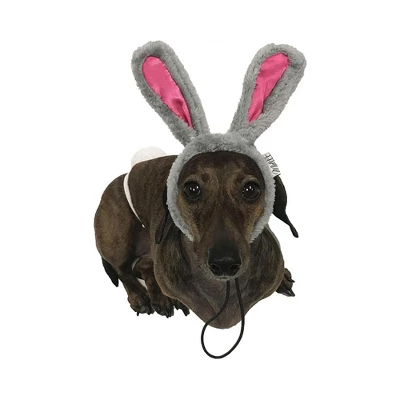 A fun way to include your pet in Easter and Spring celebrations. Includes soft, gray plush bunny rabbit ear headband and a white plush bunny tail. Headband stretches from 3″ to 5″. The elastic tail band stretches up to 14″. Good for small breed dogs.