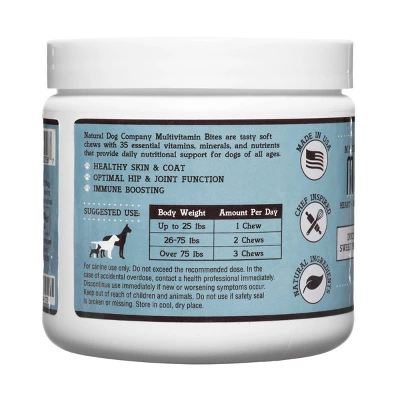 Natural Dog Company Multivitamin Supplements are a very delicious & nutritious way to support your pup’s health from the inside out! Our nutrient-dense premium supplement supports joint health, improves skin & coat health, and is easy to digest. Our plant-based ingredients help promote holistic health and help to boost the immune system.