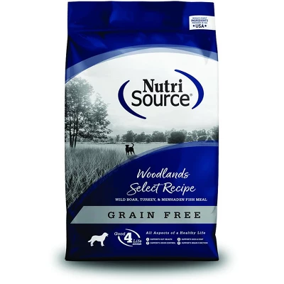 NutriSource® Woodlands Select Recipe Grain Free Dog Food is a scientifically formulated, easy-to-digest food. Real wild boar is the number one ingredient. Wild boar has rich, wholesome taste dogs love and is a source of high-quality protein that helps maintain muscle mass and strength. Our blend of wild boar, turkey and carefully selected ingredients helps balance essential nutrients necessary for the health and well-being of your furry friend. Feed with confidence knowing that you’re part of a family that loves your pets just as much as you do. Health begins here.