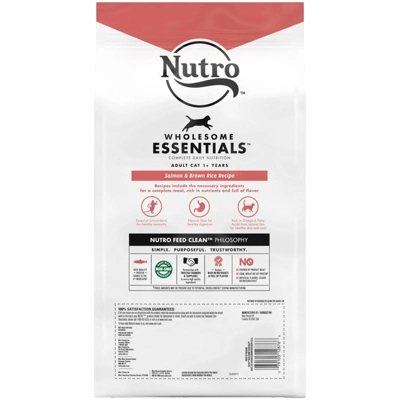 - Contains one (1) 5 lb. bag of NUTRO WHOLESOME ESSENTIALS Adult Salmon & Brown Rice Recipe Natural Cat Food Plus Vitamins, Minerals & Other Nutrients