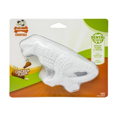 Nylabone Durable Dental Dinosaur Dog Chew These Dinosaur-shaped dental chews offer raised dental tips that massage dogs teeth and gums while attacking plaque and tartar build-up, offering great overall dental health. Features ? Designed to offer great overall dental health ?