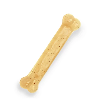 The Nylabone FlexiChew Giant Bone is a soft, chewy dental bone that is clinically proven to reduce plaque and tartar buildup. These flexible chews are perfect for moderate chewers and feature chicken-flavored particles to encourage healthy chewing behaviors.