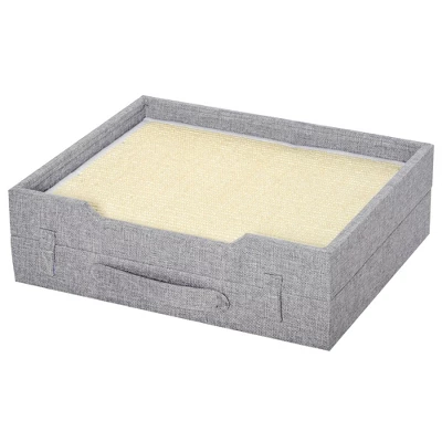 Stimulate your cat’s natural instincts with this Pawhut cat hut. This kitty bed includes a soft cushion to provide a cozy haven for your furry friend to rest and play. The foldable design lets customize the space to create a cat condo or a pet bed. The surface of the cat house is covered with sisal scratching pad to relieve your catsโ desire to claw and save your carpets and furniture from damage. Fold the covered cat bed and use the carrying handle for easy transportation.