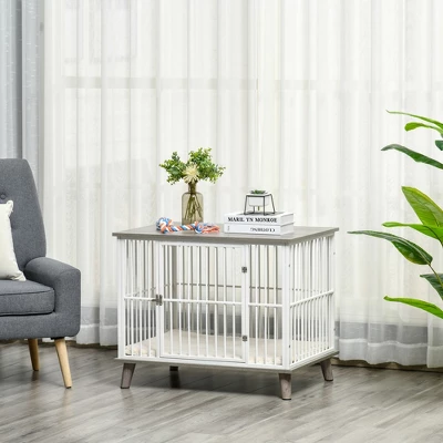 - CONVENIENT & VERSATILE: This furniture style dog crate is light and easy to assemble, making it suitable for small dogs. Also, with its flat-top roof, you can place your pet accessories and other items.