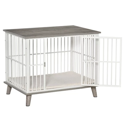 - SOLID STRUCTURE: Steel and particleboard with a wood-like finish make this dog kennel furniture durable and stylish. Since it has a rustic aesthetic, you can easily combine it with your other home décor.