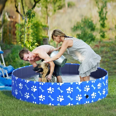 Make sunny days fun for everyone with the PawHut foldable pet swimming pool! Give your furry friend a place of their own to cool off during warm days! This dog pool is made with solid and non-toxic PVC material for a stable and safe place to play. The collapsible pool doesn’t require inflation or pumps, making set up easy. A built-in plug makes draining the water fast and simple. The foldable pet pool is collapsible, making it easy to carry, put away in storage and travel with. This foldable pet swimming pool is suitable for extra small, small, medium, large and extra large sized dogs.