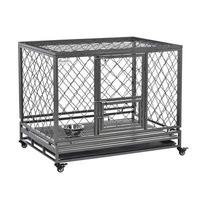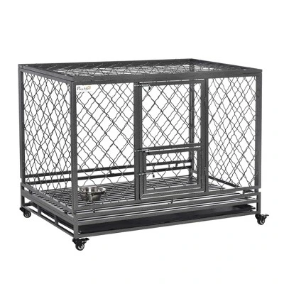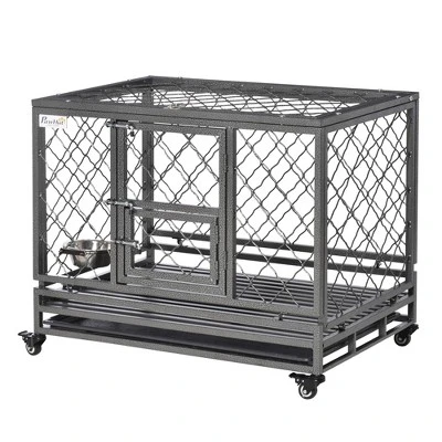 Give your furry friend a den of their own with this heavy duty dog cage from PawHut! The dog kennel is made with steel gauge tubes frame and a solid steel net for a stable structure that is suitable for daily use. Each bar is securely welded to the frame for strength and stability. Keep your furry friends space clean and tidy! This kennel includes a slide out tray, making cleaning and maintenance a breeze. Move the medium dog crate with ease! The 4 caster wheels provide easy and effortless movement.