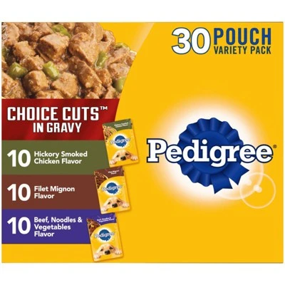 Your dog’s mealtime is the most exciting part of their day… and when you add PEDIGREE Wet Dog Food to their bowl, you can make it even better. It contains perfectly chopped pieces with real chicken or beef, with delicious ingredients they can’t resist… and in convenient, single-serve pouches so there’s less mess for you. With this PEDIGREE CHOPPED GROUND DINNER Wet Dog Food Variety Pack, your dog can try the delicious flavors of beef and cheese, bacon and filet mignon, and hearty chicken. Want to mix it up? Add CHOPPED GROUND DINNER Soft Dog Food with their favorite kibble or use for a topper for the ultimate mealtime experience. Dogs bring out the good in us. PEDIGREE brings out the good in them. Feed the good.