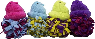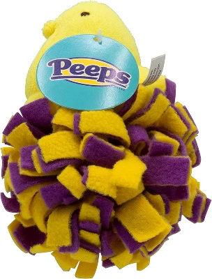 Peeps for your favorite pet! Give these classic Peeps toys a toss and watch as your canine fetches this cute little chick. Peeps plush Chick Fleece Bottom Toy is essential for keeping your pooch active and happy! This toy will provide hours of fun for your dog while traveling or long car rides. You’ll receive one chick fleece bottom toy for dogs in yellow and purple. Peeps pet toys make a fun gift for the dog lover in your life will be a hit in any Easter-themed basket. Peeps toys for pets makes a squeaking sound when squeezed, satisfying your furry friend’s desire to make noise.