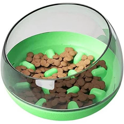 Pet Life ® ‘Tumbowl’ Slow Feeding Pet Bowl features a unique weighted bottom that swivels around and doesn’t tilt or tumble over while eating. The bottom of the bowl is a specially designed slow feeder meant to help reduce consumption speed and slow down digestion. The upper portion of the bowl is tilted for easier reach over engineered to place less stress and tension by the neck area during feeding. Features a modern curved design with a thick and transparent outer rim the provides food visibility while making it convenient to view food levels. This bowl is further easy to clean and dishwasher safe. Available in Multiple Colors. Capacity: 40 oz.SIZING DIMENSIONS: (INCHES) L x W x H7.52 X 7.52 X 5.67