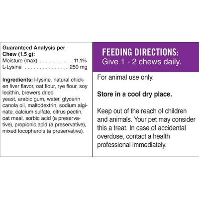 - L-Lysine from Pet Natural’s comes in a delicious chicken liver bite sized chew that cats love!