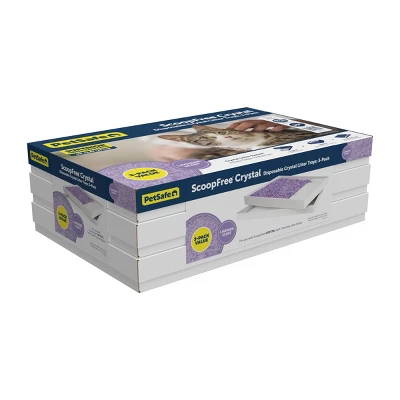 Each ScoopFree® Complete disposable Crystal Litter Tray is pre-filled with lightly scented lavender crystal litter, so all you have to do is load the tray in the litter box with no scooping, cleaning or refilling for weeks! These trays reduce mess in your home with a plastic lining to fight leaks, and with low-tracking crystals that stick inside the box instead of on your cat’s paws. Crystal litter absorbs urine and dries solid waste to quickly remove odors 5 times faster than clumping clay litter. When it’s time to clean up, just remove the disposable litter tray and throw it away. It doesn’t get much easier than that! These replacement trays are compatible with ScoopFree® Complete self-cleaning cat litter boxes. Your pet deserves the best. Trust PetSafe® to help keep your pet healthy, safe and happy.