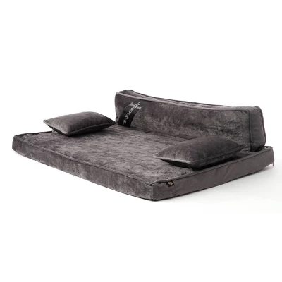 The Precious Tails Modern Sofa Cat & Dog Bed w/ Removable Cover is an orthopedic dog bed that’s made from polyester and comes with two side pillows and one long back pillow. It is all filled with memory foam and synthetic fiber which is good for the older pups and kitties that need some extra support while they relax and snooze. The removable cover is machine washable.