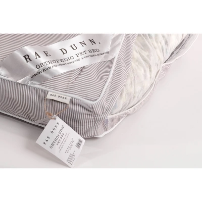 Rae Dunn Luxury Orthopedic Pet Bed is filled with high quality shredded memory foam. The 4” thick memory foam provides optimal comfort and joint support. It’s perfect for seniors, pets with arthritis or hip dysplasia or any dog who needs a little extra comfort. The bed features REST embroidered sentiment in Rae Dunn’s signature font on frayed edge patch. This bed is easy to care for, thanks to a 100% polyester removable cover that’s machine-washable. Rae Dunn’s signature font gives every product a personal touch and adds to the simple beauty of her designs. Every Rae Dunn collector is sure to enjoy. Makes a great gift too!
