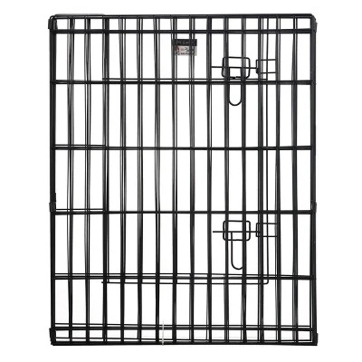 The Puppy Playpen by PETMAKER provides a great enclosure to keep your pets safe and secure indoors or out. The puppy pen has 8 connected 24-inch panels to create a spacious play area for puppies, small dogs, cats, rabbits, large turtles, or any appropriately sized pet up to 25lbs. The dog play pen is made of heavy gauge wire with a black satin electro-coat finish for long lasting protection against the elements, and it’s equipped with a secure door with double latches for easy assembly. The foldable design of this playpen for dogs allows you to set it up in multiple configurations and can fold flat for compact storage and portability.