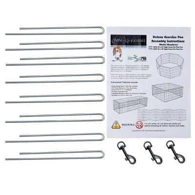 - PRODUCT DETAILS – Materials: Metal. Dimensions: Assembled: Each Panel: (L) 24″ x (W) 30″. Includes 8 Ground Stakes and 3 Thumb Snaps. For Indoor or Outdoor Use by Pets Under 25lbs. Color: Black
