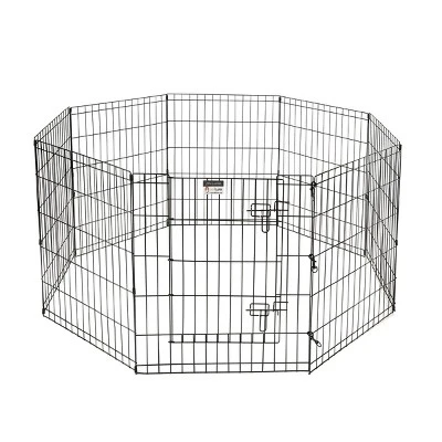 - PET PLAYPEN – A great alternative to other dog fences for the yard, this play pen lets you create a spacious play area for puppies, small dogs, cats, rabbits, or any appropriately sized pet up to 25lbs. Assemble pieces of this playpen to make a dog cage.