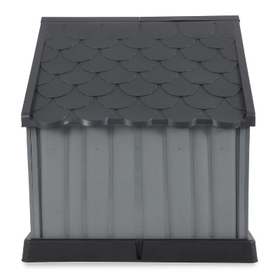 Your most loyal companion deserves a space to call their own. Treat your furry friend to the Outdoor Pet House Waterproof Shelter by Ram Quality Products. This extra large dog kennel offers a safe, warm, and dry space for your pets to lounge around and cool off. Thanks to the tool-free, easy assembly and included hardware, you can build this dog house within minutes. Constructed from high-quality plastic materials and a stable base, this tiny house is built to withstand whatever weather conditions mother nature throws your way. The waterproof dog shed features a slanted roof that diverts rainwater and has an elevated floor to prevent the outdoor shelter from flooding. Innovative thermal balancing properties protect your pup from cold winter days and keeps them cool in hot summer weather. Simple to clean, simply detach the roof for easy access into the interior of the dog house. Measuring 36 inches long, 34.5 inches wide, and 36 inches tall, the Ram Quality Products Outdoor Dog Kennel House is perfect for small, medium, large, and extra-large sized dogs and pets.