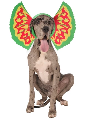 As if your pup didn’t cause enough mischief without a costume, they’ll really be ready to wreak some havoc when they’re sporting our Jurassic World Dilophosaurus Gills Pet Collar Accessory. With this one, you will receive just the accessory your dog needs to stomp and roar just like a miniature dinosaur. Featuring a green, red, and yellow Dilophosaurus dog collar headpiece that will have your pup looking truly fearsome, you don’t want to miss out on this Jurassic Park accessory for your furry canine friend!