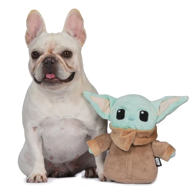 - STAR WARS MANDALORIAN DOG TOY – The adorable Baby Yoda dog toy from Star Wars Mandalorian is ready to play with your pet in the form of this adorable, soft, and plush squeaky dog toy