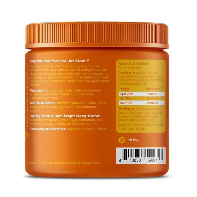 - The probiotics in Chew No Poo Bites also support canine immune system function to keep your doggy feeling their zesty best.