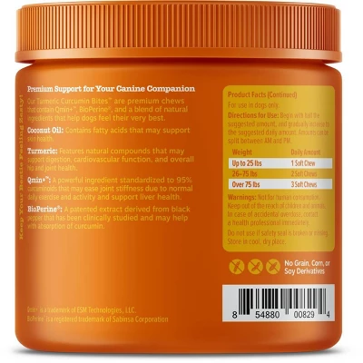 - The turmeric found in these tasty soft chews may also support canine skin health.